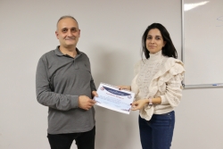Eğitim, soru-cevap bölümüyle son bulurken Doç. Dr. Evren Sarıyılmaz’a Ağız, Diş ve Çene Radyolojisi Anabilim Dalı Öğretim Üyesi Dr. Öğr. Üyesi Rüya Sessiz tarafından teşekkür belgesi takdim edildi.