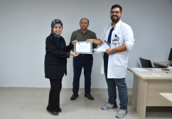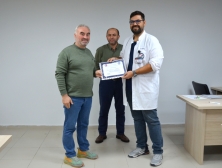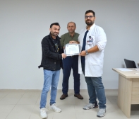 DİSMER Müdürü Aşkın Güvemli tarafından bilgilendirmelerin yapıldığı toplantıda; çeşitli alanlarda Merkezimize sunmuş oldukları katkılardan dolayı İnşaat Mühendisi Salih Zeki Aydın, Hizmetli Personeller Aleyna Güneş ve Nafi Çınar’a DİSMER Başhekim Vekili Dr. Öğr. Üyesi Celal Genç tarafından teşekkür belgesi takdim edildi.