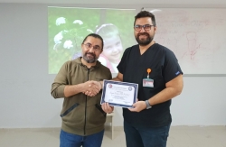 Eğitim sonunda DİSMER Başhekim V. Dr. Öğr. Üyesi Celal Genç tarafından Uzman Psikolog Serdar Topal’a teşekkür belgesi takdim edildi.