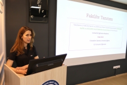 Arş. Gör. Dr. Ayçahan Nuhoğlu tarafından fakültemizin tanıtımının yapıldığı oryantasyonda, Şube Müdürü Cemile Feryal Battal tarafından Fakültemiz Kalite Süreçleri ve Üniversite Bilgi Yönetim Sistemi (ÜBYS) kullanımı hakkında bilgiler verildi.
